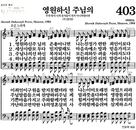 새찬송가 악보: 403장 영원하신 주님의(고화질/가사)