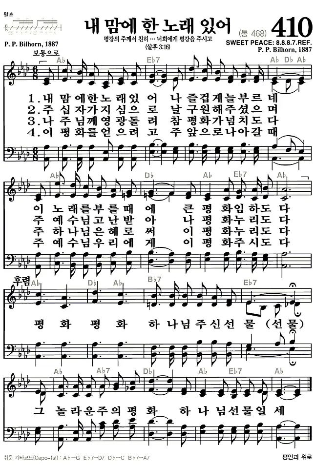 새찬송가 악보: 410장 내맘에 한 노래 있어(고화질/가사)