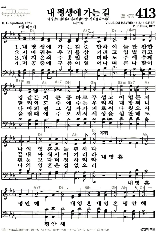 새찬송가 악보: 413장 내 평생에 가는 길(고화질/가사)