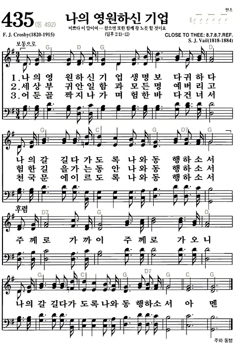 새찬송가 악보: 435장 나의 영원하신 기업(고화질/가사)
