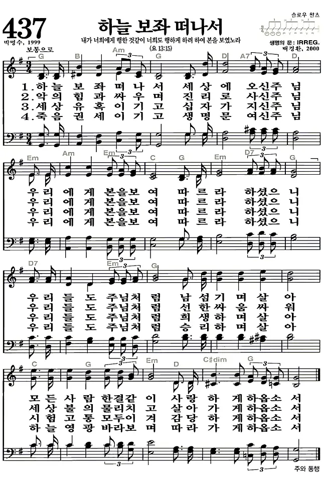 새찬송가 악보: 437장 하늘 보좌 떠나서(고화질/가사)
