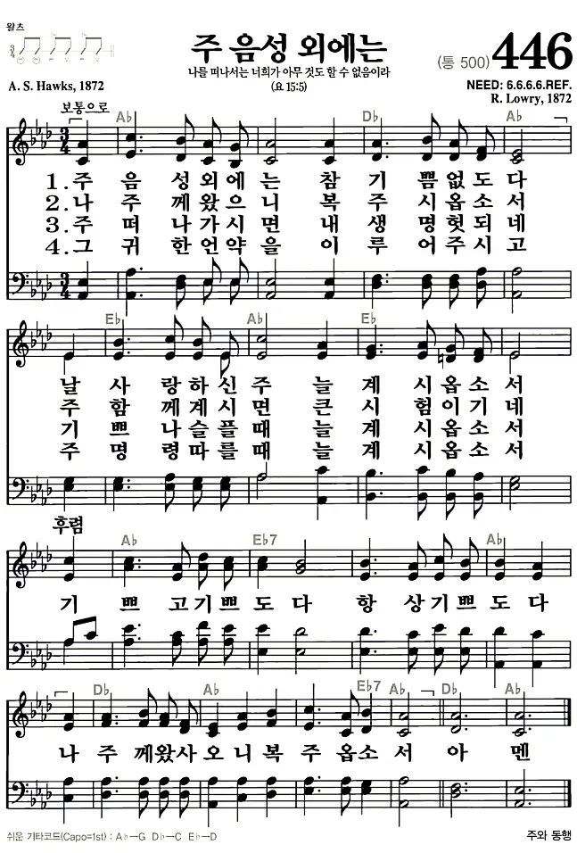 새찬송가 악보: 446장 주 음성 외에는(고화질/가사)