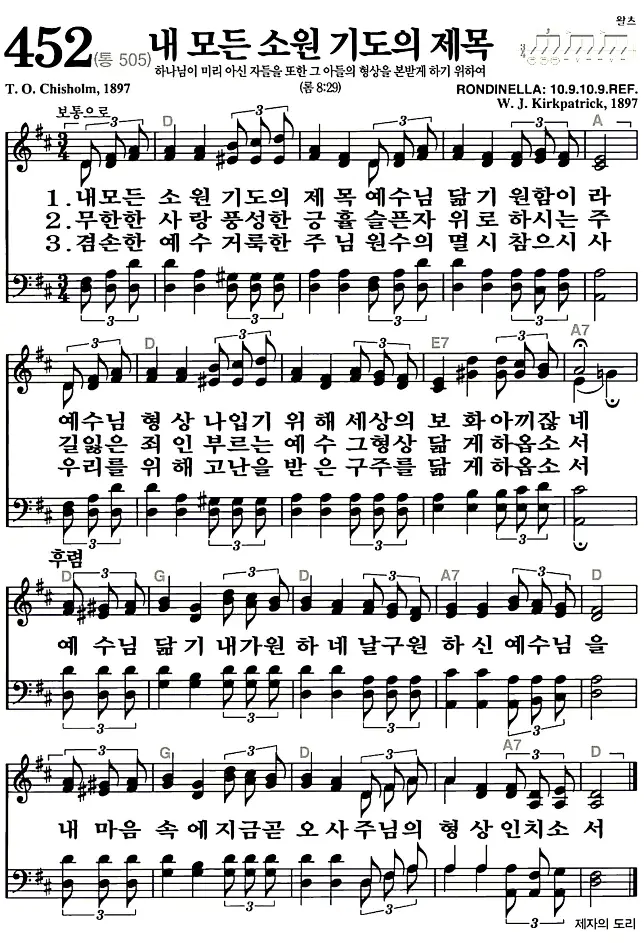 새찬송가 악보: 452장 내 모든 소원 기도의 제목(고화질/가사)