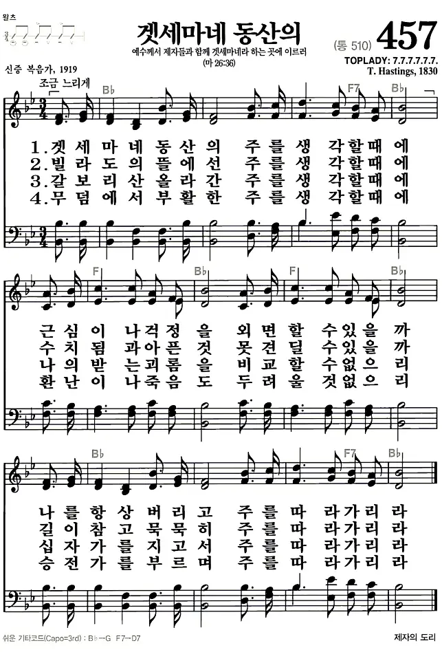 새찬송가 악보: 457장 겟세마네 동산의(고화질/가사)