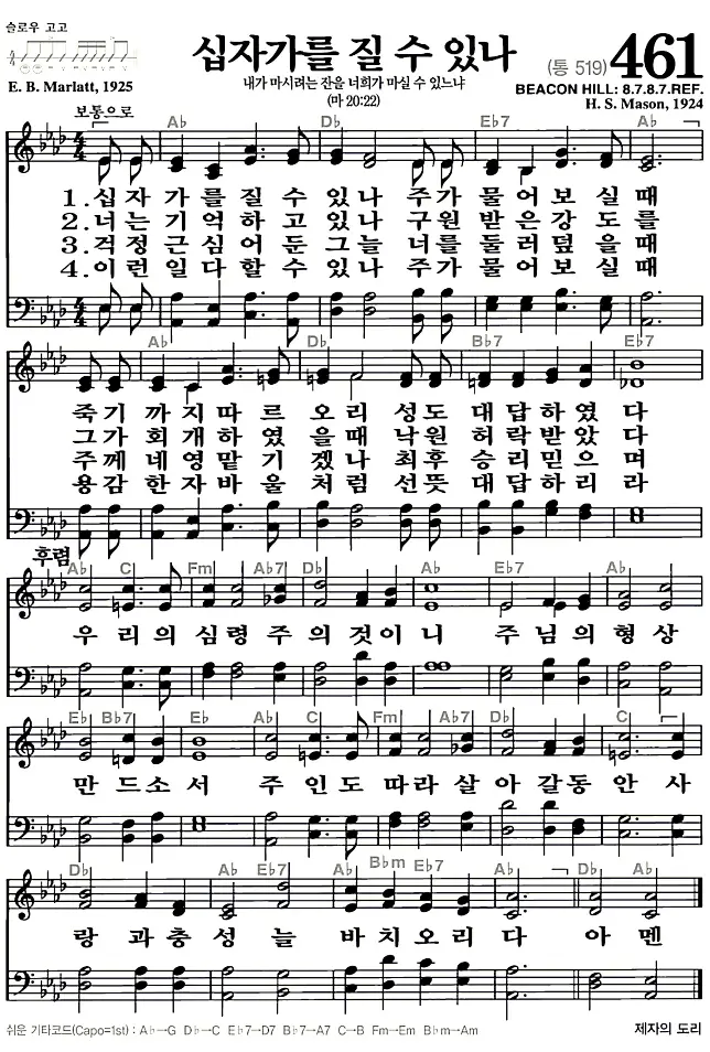 새찬송가 악보: 461장 십자가를 질 수 있나(고화질/가사)