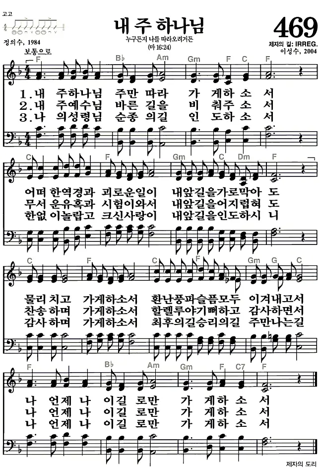 새찬송가 469장 내 주 하나님의 고화질로 스캔된 새찬송가 악보입니다.