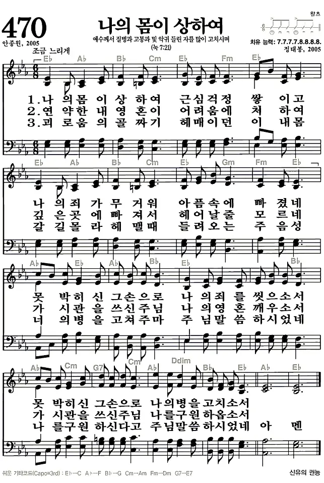 새찬송가 악보: 470장 나의 몸이 상하여(고화질/가사)