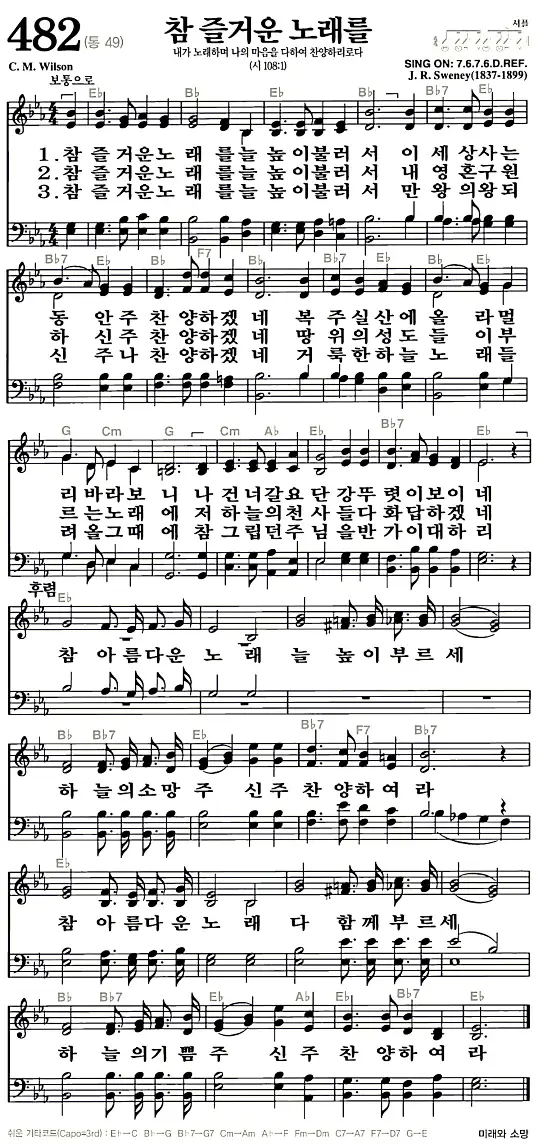 새찬송가 악보: 482장 참 즐거운 노래를(고화질/가사)