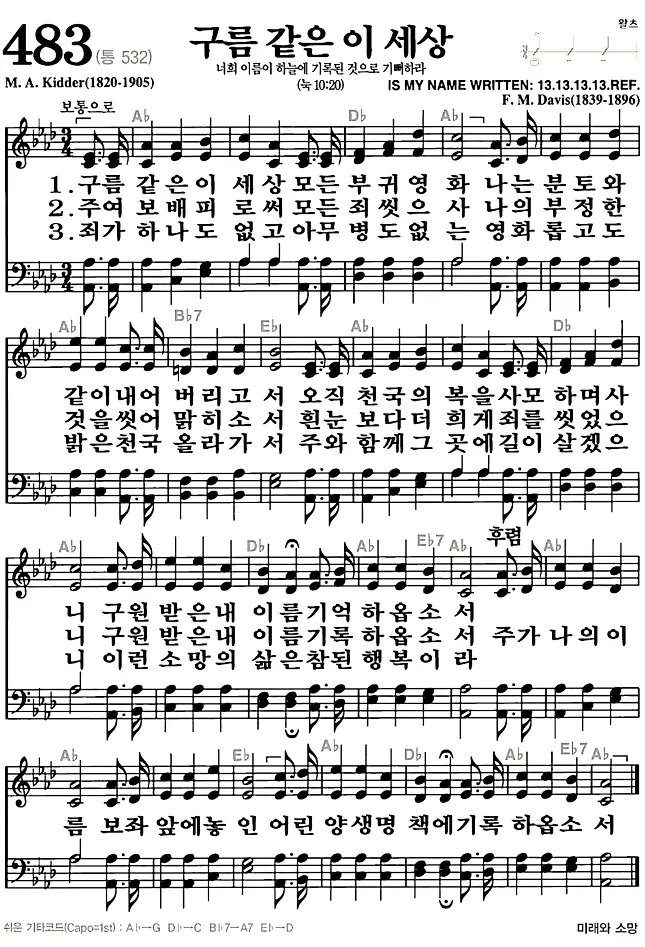 새찬송가 악보: 483장 구름같은 이세상(고화질/가사)