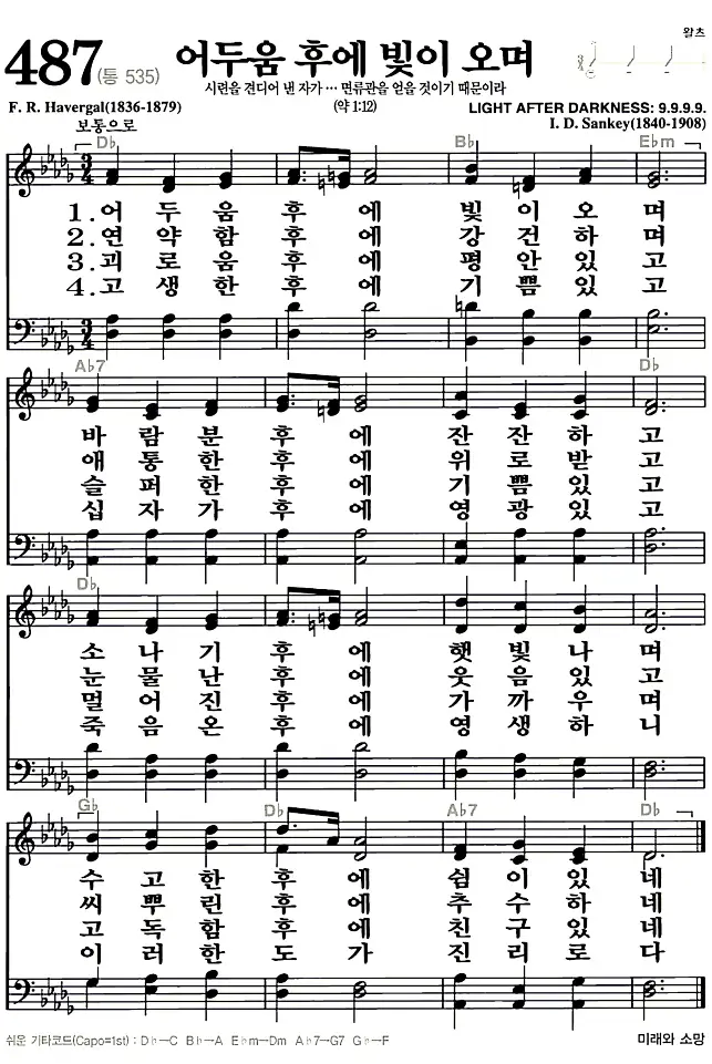 새찬송가 악보: 487장 어두움 후에 빛이 오며(고화질/가사)