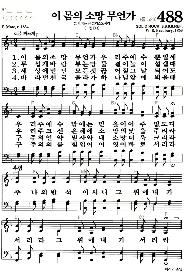 새찬송가 악보: 488장 이 몸의 소망 무언가(고화질/가사)