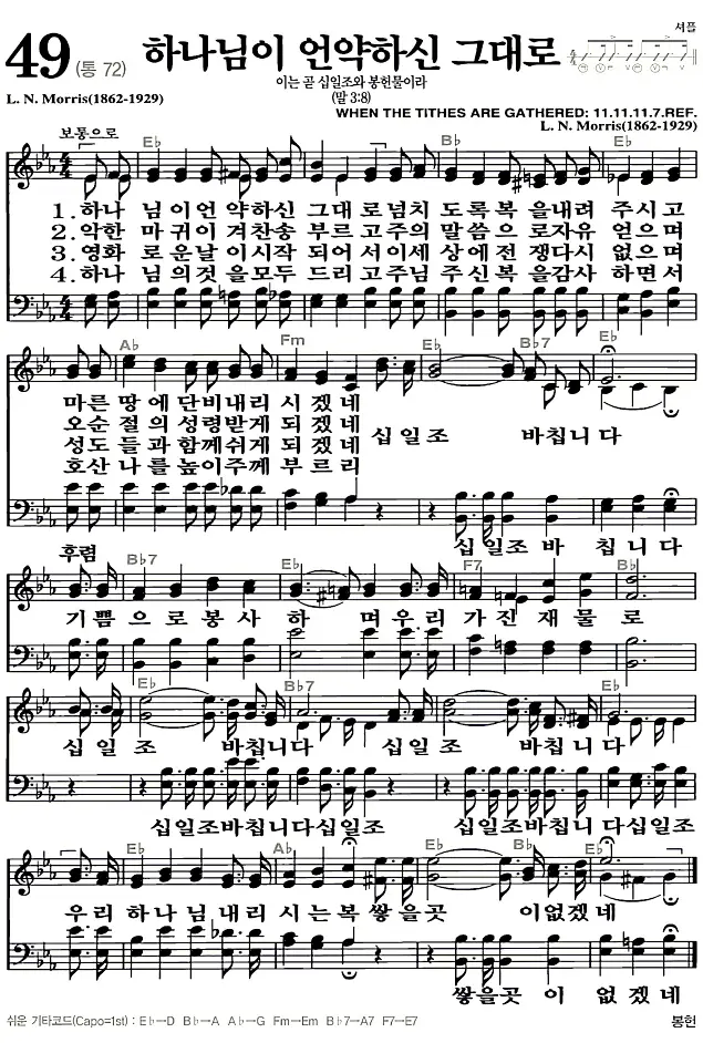 새찬송가 악보: 49장 하나님이 언약하신 그대로(고화질/가사)