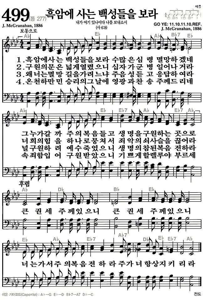 새찬송가 악보: 499장 흑암에 사는 백성들을 보라(고화질/가사)
