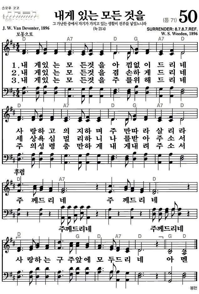 새찬송가 악보: 50장 내게 있는 모든 것을(고화질/가사)