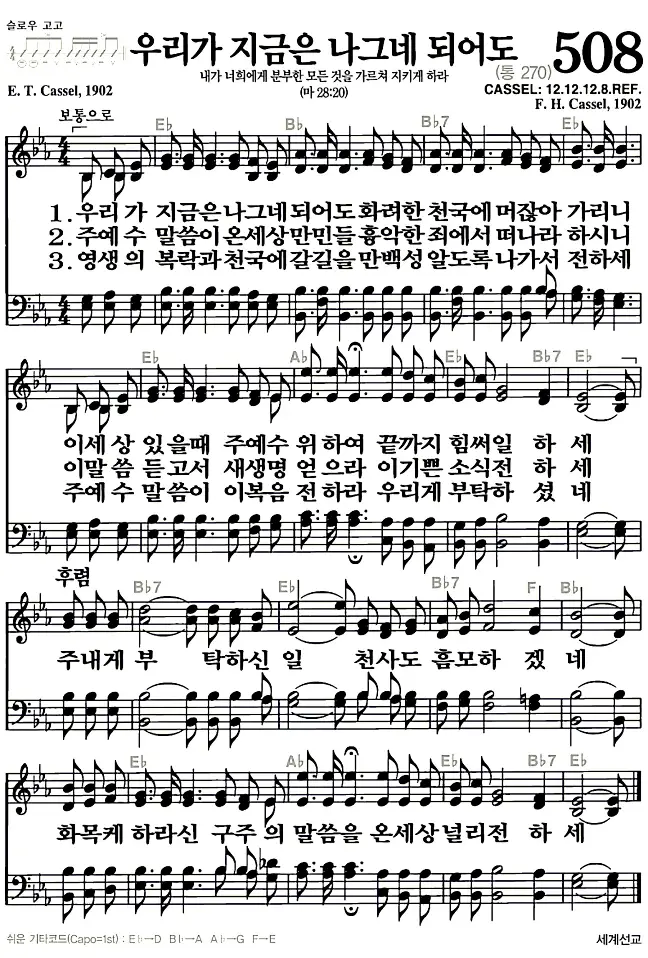 새찬송가 악보: 508장 우리가 지금은 나그네 되어도(고화질/가사)