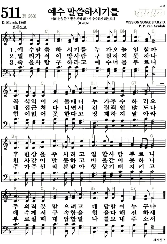 새찬송가 악보: 511장 예수 말씀하시기를(고화질/가사)