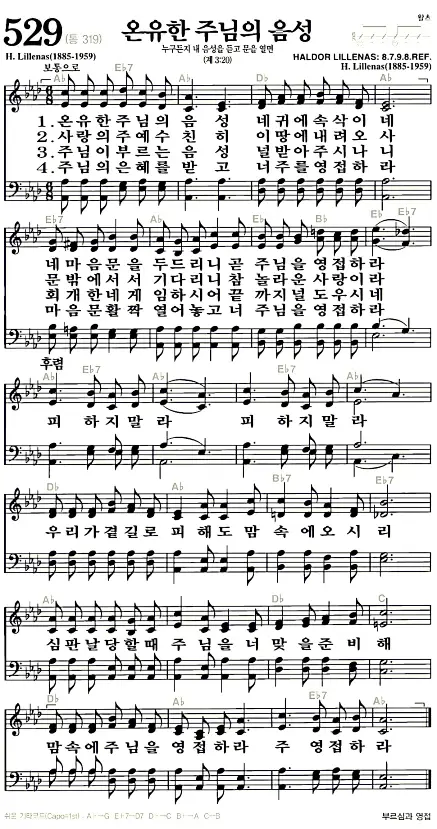 새찬송가 악보: 529장 온유한 주님의 음성(고화질/가사)