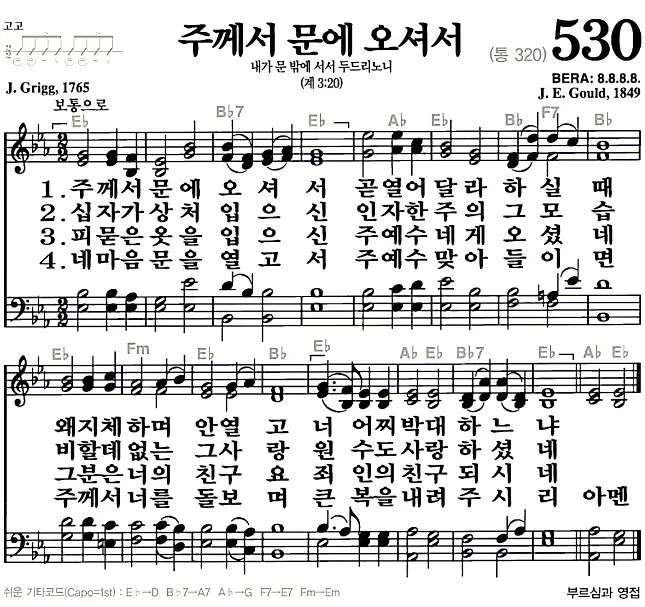 새찬송가 악보: 530장 주께서 문에 오셔서(고화질/가사)