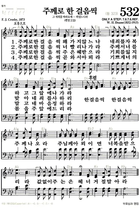 새찬송가 악보: 532장 주께로 한걸음씩(고화질/가사)