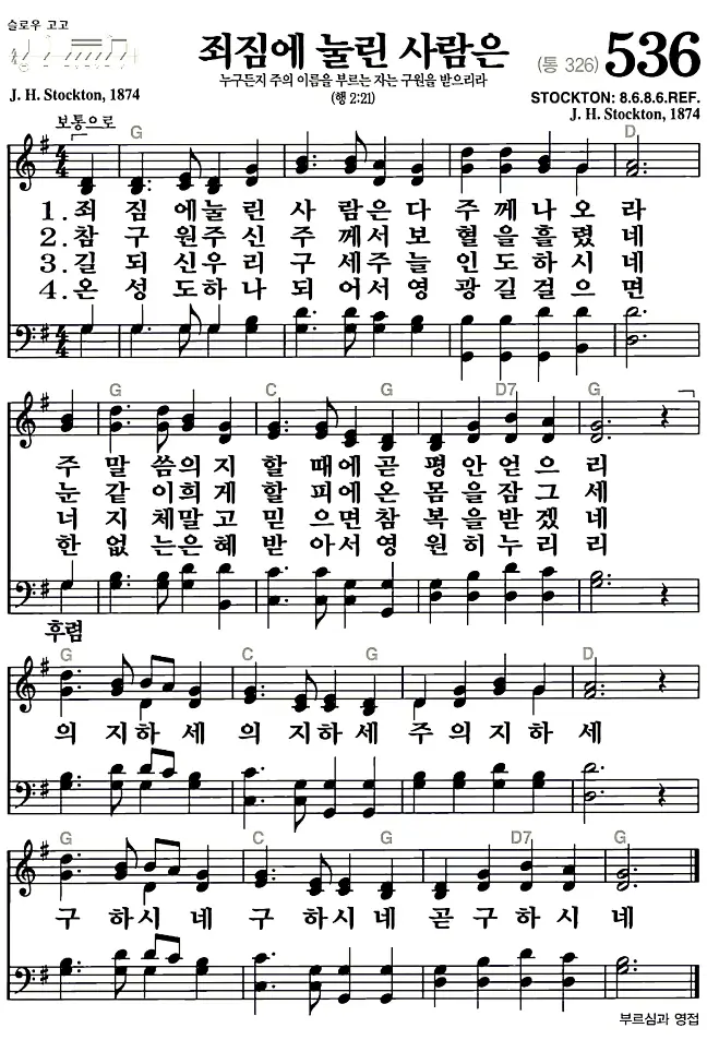 새찬송가 악보: 536장 죄짐에 눌린 사람은(고화질/가사)
