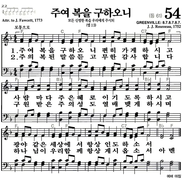 새찬송가 악보: 54장 주여 복을 구하오니(고화질/가사)