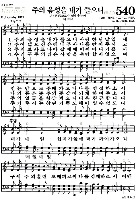 새찬송가 악보: 540장 주의 음성을 내가 들으니(고화질/가사)