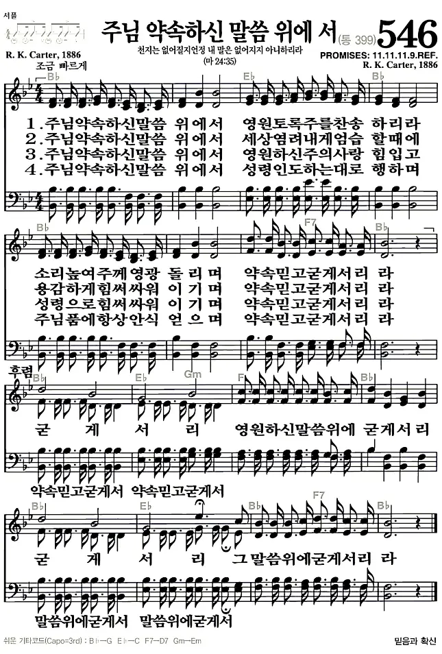 새찬송가 546장 주님 약속하신 말씀 위에서의 고화질로 스캔된 새찬송가 악보입니다.
