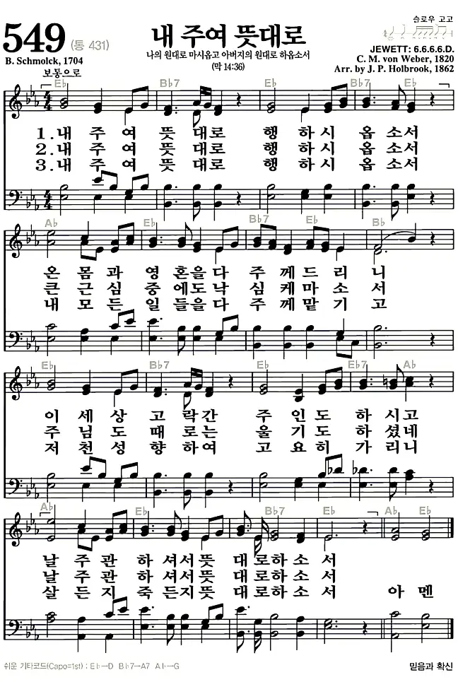 새찬송가 악보: 549장 내 주여 뜻대로(고화질/가사)