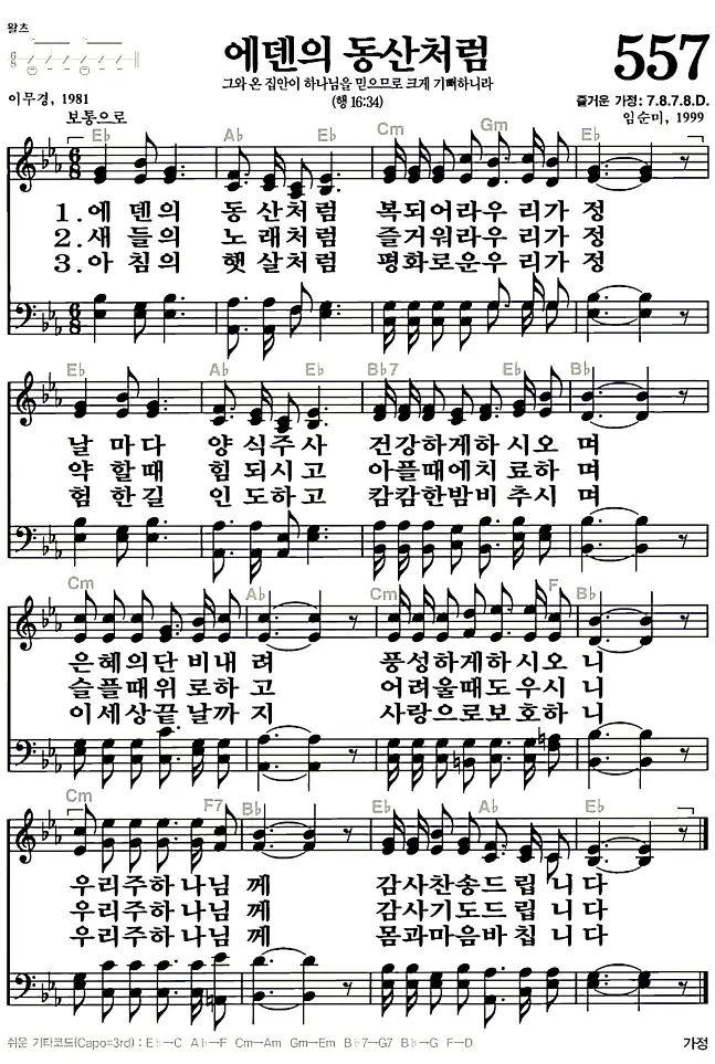 새찬송가 악보: 557장 에덴의 동산처럼(고화질/가사)