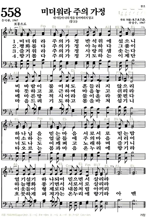 새찬송가 악보: 558장 미더워라 주의 가정(고화질/가사)