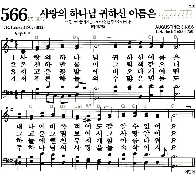 새찬송가 악보: 566장 사랑의 하나님 귀하신 이름은(고화질/가사)