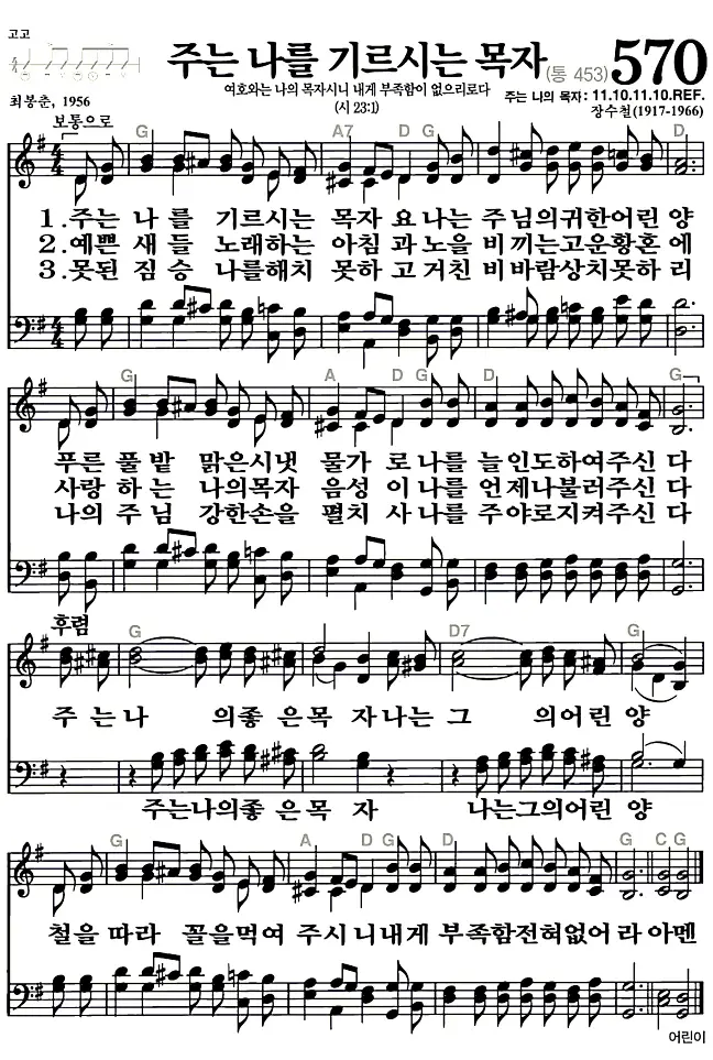 새찬송가 악보: 570장 주는 나를 기르시는 목자(고화질/가사)
