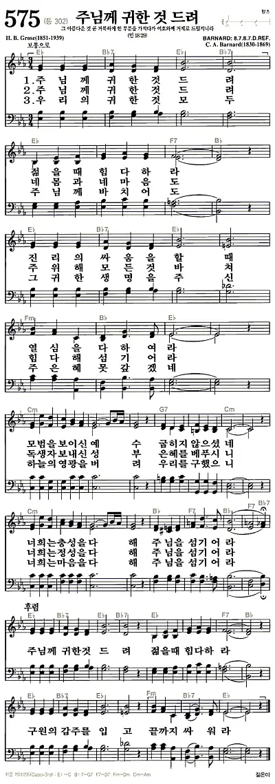 새찬송가 악보: 575장 주님께 귀한것 드려(고화질/가사)