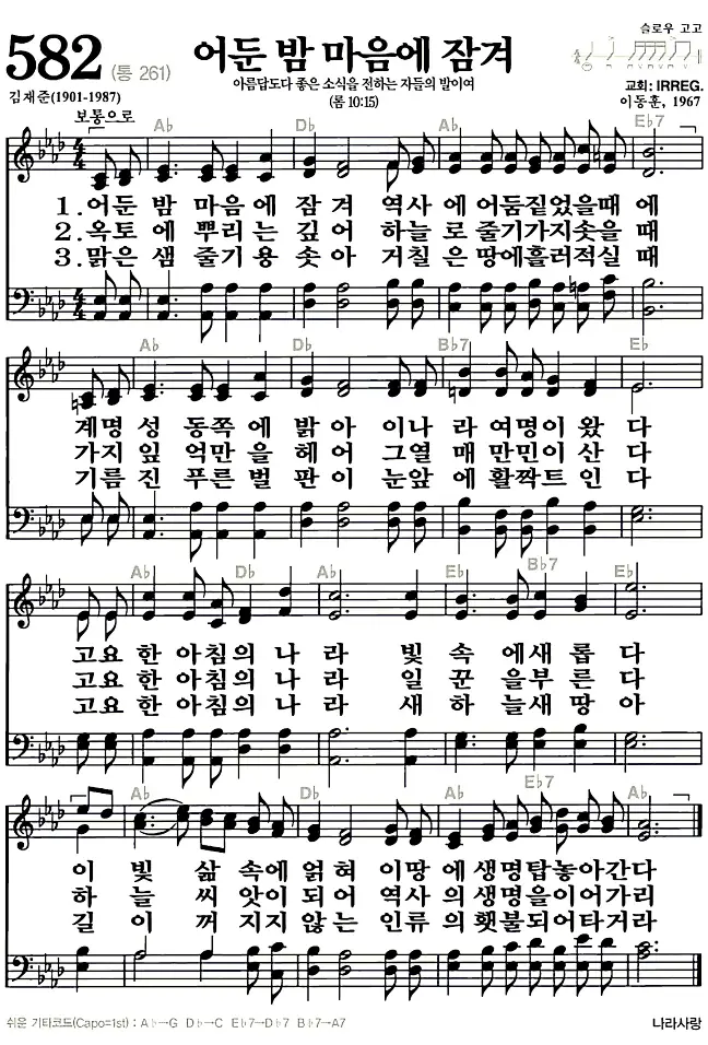 새찬송가 악보: 582장 어둔밤 마음에 잠겨(고화질/가사)