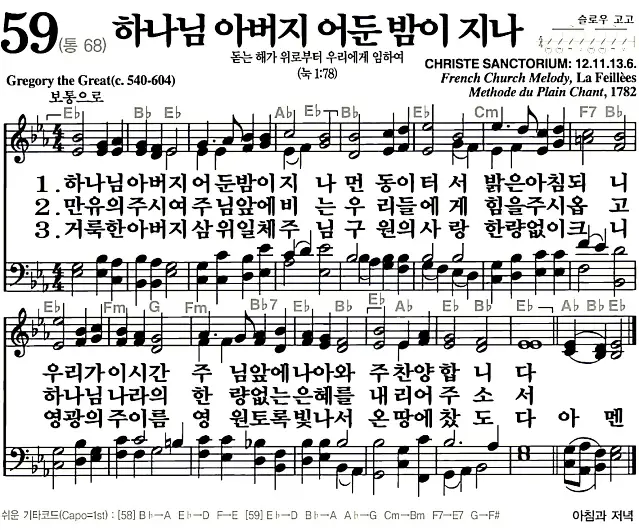 새찬송가 악보: 59장 하나님 아버지 어둔 밤이 지나(고화질/가사)