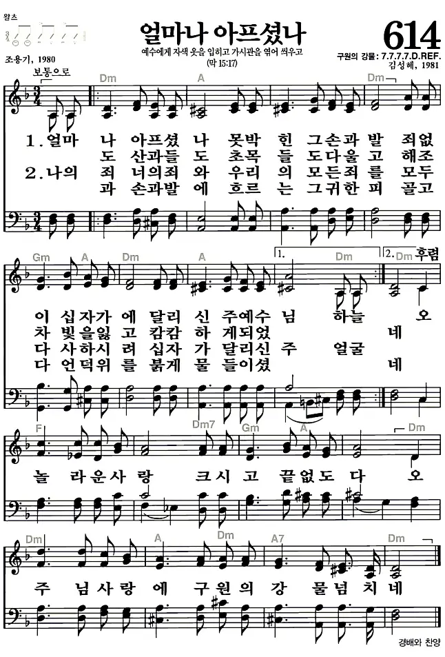 새찬송가 악보: 614장 얼마나 아프셨나(고화질/가사)