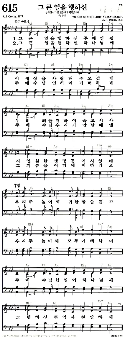 새찬송가 악보: 615장 그 큰일을 행하신(고화질/가사)