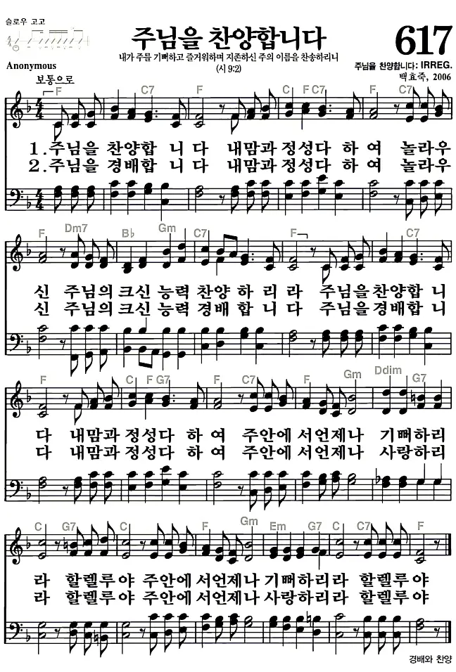 새찬송가 악보: 617장 주님을 찬양합니다(고화질/가사)