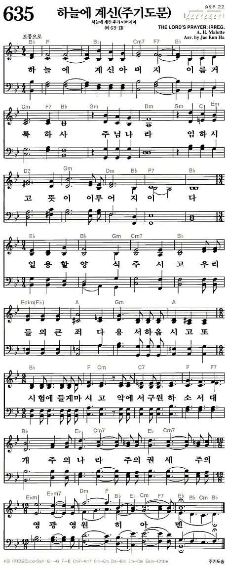 새찬송가 악보: 635장 하늘에 계신(주기도문)(고화질/가사)