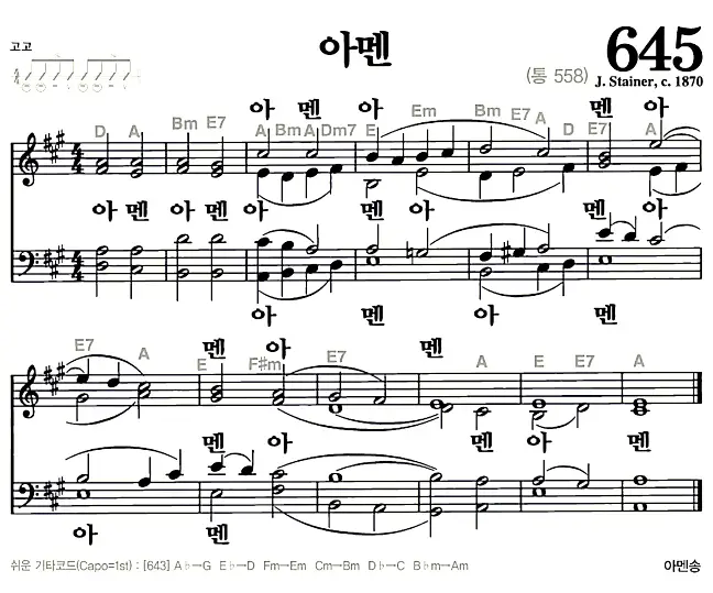 새찬송가 악보: 645장 아멘(일곱 번 아멘)(고화질/가사)