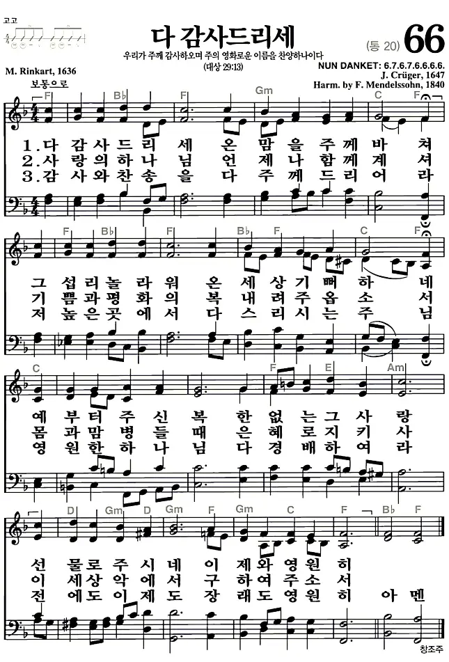 새찬송가 악보: 66장 다 감사드리세(고화질/가사)