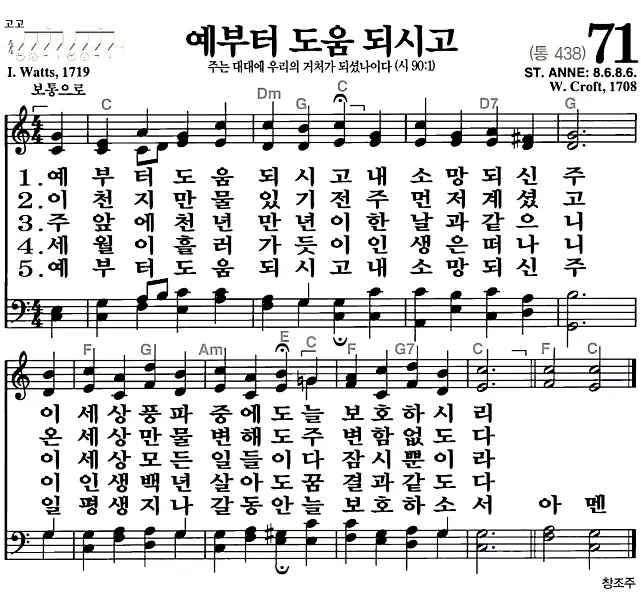 새찬송가 악보: 71장 예부터 도움 되시고(고화질/가사)