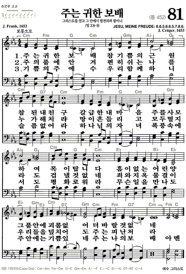 새찬송가 81장 주는 귀한 보배의 고화질로 스캔된 새찬송가 악보입니다.