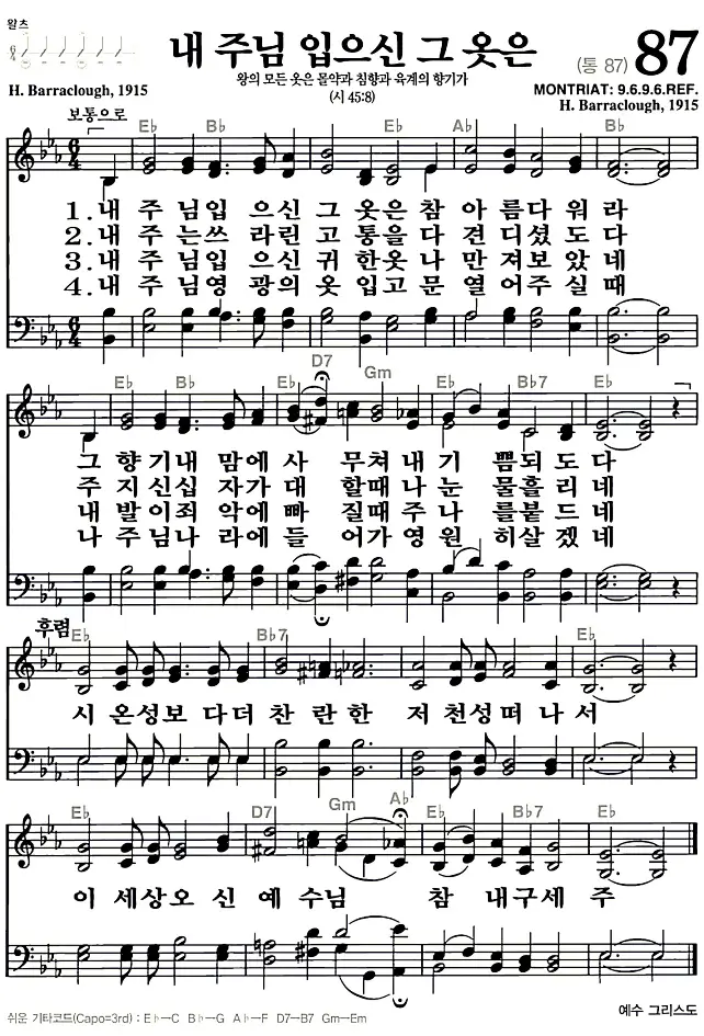 새찬송가 악보: 87장 내 주님 입으신 그 옷은(고화질/가사)