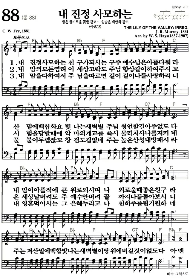 새찬송가 악보: 88장 내 진정 사모하는(고화질/가사)
