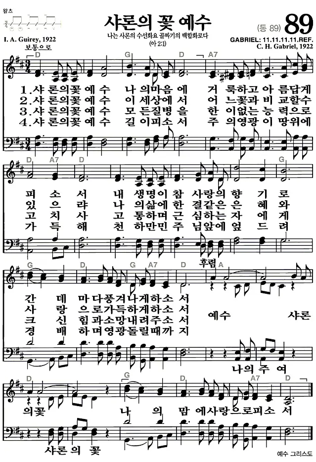 새찬송가 악보: 89장 샤론의 꽃 예수(고화질/가사)