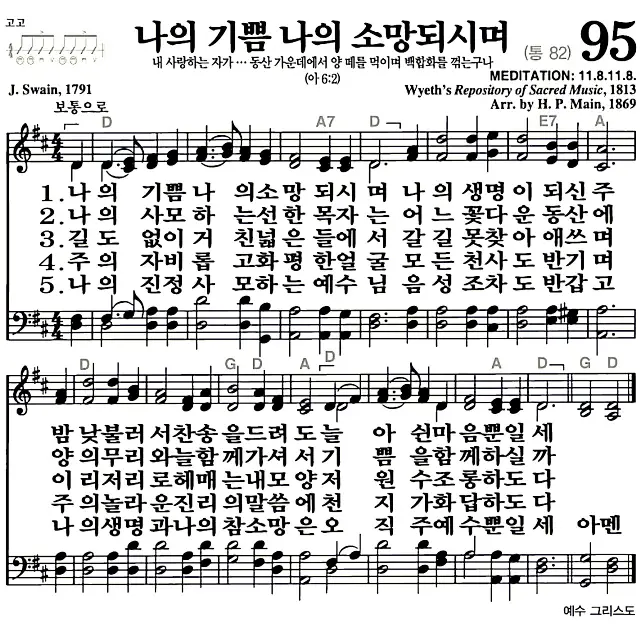 새찬송가 악보: 95장 나의 기쁨 나의 소망 되시며(고화질/가사)