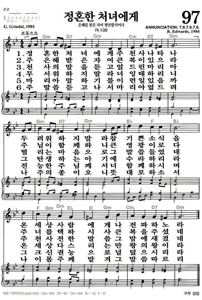 새찬송가 악보: 97장 정혼한 처녀에게(고화질/가사)