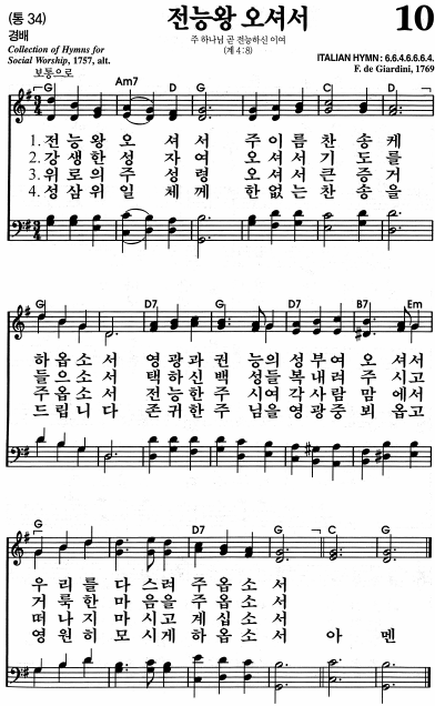 새찬송가 10장 악보, 전능왕 오셔서(고화질)