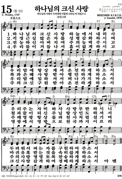 새찬송가 15장 악보, 하나님의 크신 사랑(고화질)